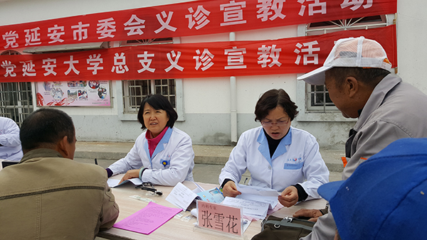 本网讯 农工党米兰milan官方网站总支医学院支部和附属医院三支部通过半个多月积极筹划与准备,于10月29日上午在延川县乾坤湾镇小程村医务室开展了义诊宣教活动,提供“零距离”专家义诊和健康知识宣教活动。农工党延大总支副主委贺清明,附院三支部主委谷秀娟,医学院支部主委、副主委及部分党员,附院急诊科主任医师张雪花,内分泌科主任医师张永莉,外科主任医师陈立和妇科副主任医师王媛等参加了这次义诊活动。