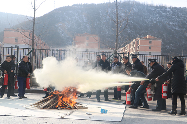 在消防演练正式开始前,延安市消防支队宝塔区消防大队的消防官兵详细介绍了开展本次消防演练的意义、安全知识、火灾发生后如何逃生及扑救初级火灾的基础技巧,演示了灭火器的正确操作方法。随后,工作人员点燃火堆模拟火灾现场,全体参演人员亲自体验灭火过程,掌握了灭火器的操作方法。在烟雾弥漫中,结束了这次紧张严肃而又活泼有趣的消防演练。