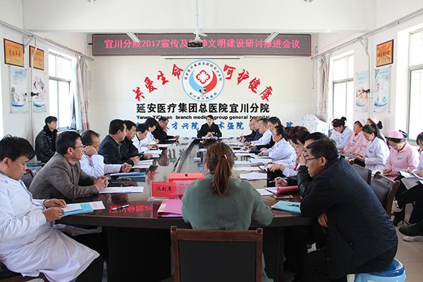本网讯 2月22日下午,宜川分院2017年宣传及精神文明建设研讨推进会议在院行政5楼会议室召开,各科室主任和护士长参加了会议。会议由分院副院长李静主持,院纪检书记王云应邀列席指导。会上,李静副院长首先就医院目前的宣传工作现状、存在的困难、下一步的宣传思路等进行了通报和分析。她要求全院充分发挥广大职工的作用,树立 “人人都是宣传员”的理念,逐步构建院——科——人三级营销机制。随后,与会人员就如何加强科室自身的宣传工作、发挥自主营销功能、实现追赶超越求突破等研讨主题进行了广泛讨论和发言,并分别代表本科室与医院签订了《宜川分院2017年宣传工作目标责任书》。李静副院长在总结讲话中结合《宜川分院关于加强和改进宣传工作的若干意见》指出, 2017年宜川分院要重点抓好九个方面工作:一是建立宣传工作目标责任制,签订目标责任书;二是发挥基层群众作用,对兼职通讯员队伍进行强化培训;三是研究制定《宜川分院新闻稿件报送及审批办法》;四是扩大拓展宣传阵地;五是创新改进各类宣传形式;六是策划设计周六专家团大型专题宣传片;七是策划创办宜川分院营销大讲堂;八是指导科室利用节日开展各类营销推广活动;九是成立各种业余兴趣小组,组织各种活动并借助活动载体大力推进宣传工作。