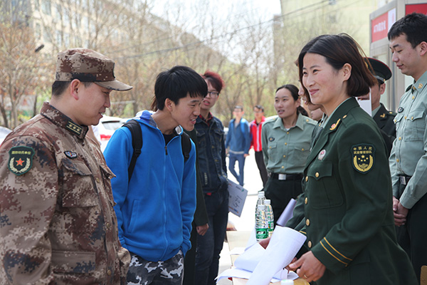活动中通过退伍学生代表们的仪表仪态和绿色军营事迹及从军经历的现场宣讲,鼓励有志青年大学生积极响应国家号召,报名参军。在征兵宣传现场,300余名大学生现场进行了报名预登记,发放征兵宣传页2000余份。