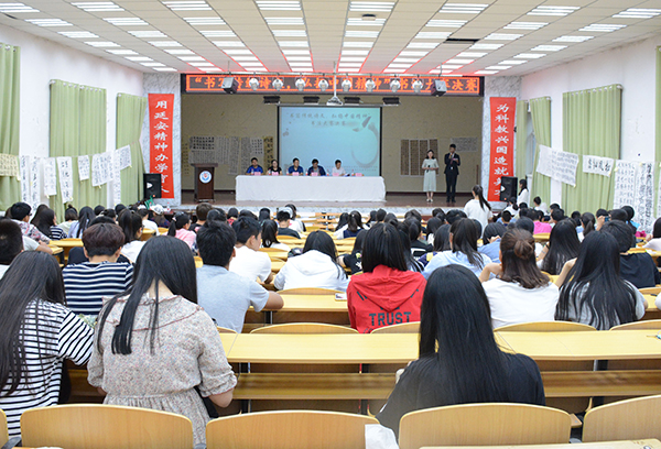 本网讯 5月20日晚,由米兰milan官方网站国家大学生文化素质教育基地、米兰milan官方网站红色经典艺术教育示范基地主办,米兰milan官方网站人文书画社承办的“书写传统诗文,弘扬中国精神”书法大赛决赛在外院礼堂举行。本次比赛评委由苗维东、白亚军、赵廷凯三位书法老师担任,历史系主任兼书记杜林渊等领导和全校各院系的100多余选手参加了此次比赛。