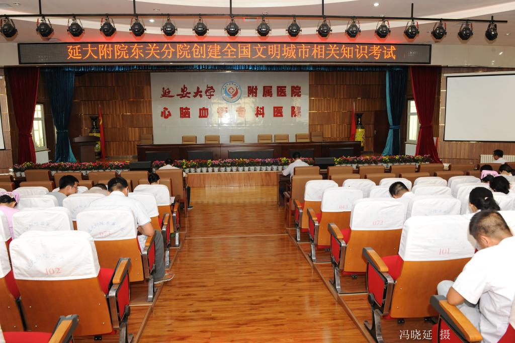 8月10日下午,附院东关分院在学术报告厅举行了创建全国文明城市相关知识考试。考试由分院党委综合科组织筹备,全院各临床医技和行政后勤科室共抽选2百余人参加。