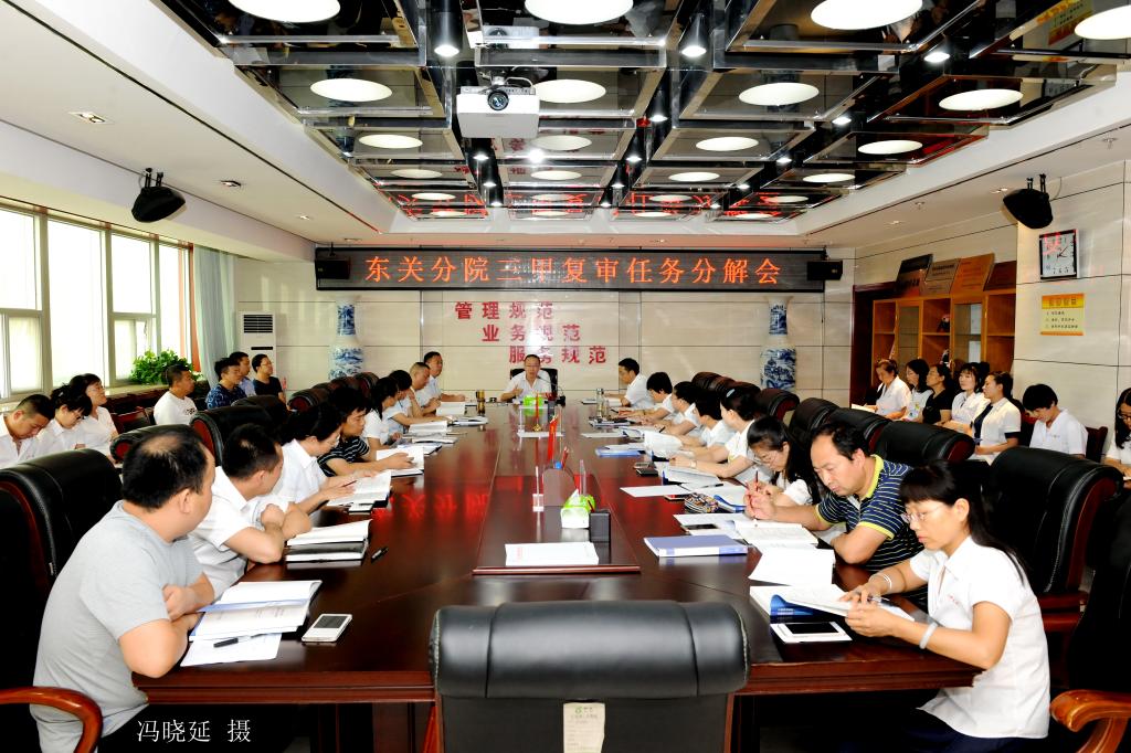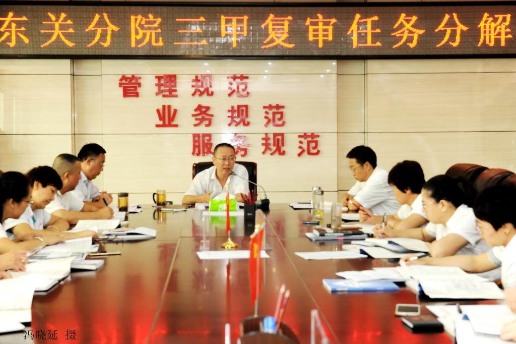 本网讯 8月14日下午,延大附院东关分院在行政楼七楼会议室召开了“三甲”复审任务分解会,会议由东关分院副院长李晖同志主持,院领导、行政后勤科室负责人和“三甲”复审工作联络员参加了会议。