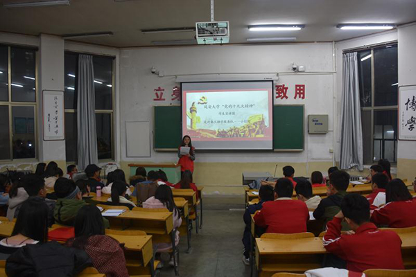 王彦杰副处长在讲话中激励同学们把学习和贯彻党的十九大精神和个人的学习及成长成才紧密结合起来,希望同学们一要坚定理想信念;二要树立明确的人生目标和奋斗方向;三要能吃苦,培养个人的优秀意志和品质;四要懂感恩、勇担当,努力做新时代优秀大学生。