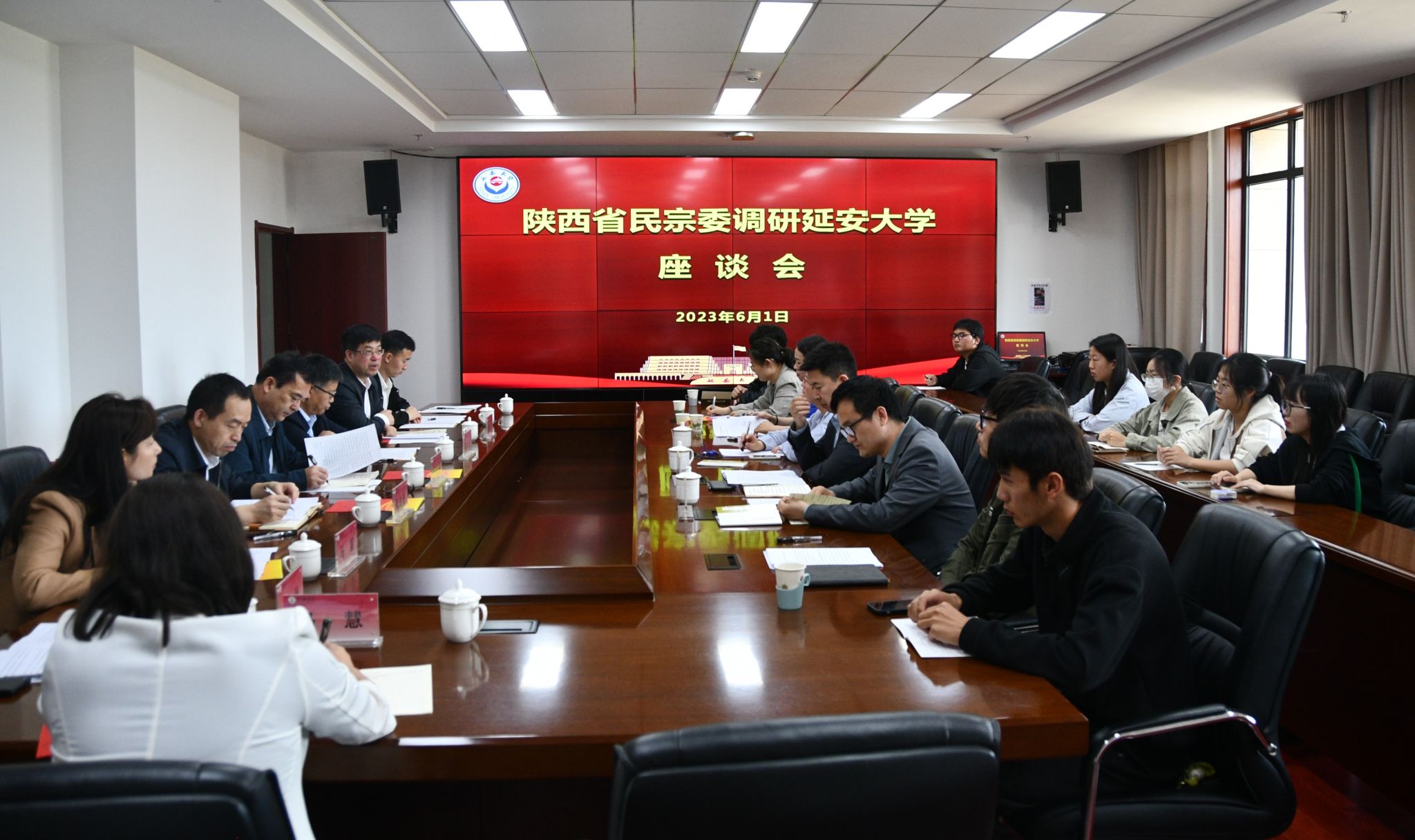 本网讯 6月1日上午,省民宗委党组成员、副主任王晓斐带领相关处室人员一行5人来校调研全省第八届民族运动会筹备情况和民族团结进步创建工作,延安市民宗局局长赵东升等陪同调研。米兰党委办公室、校长办公室主任李杨接待了调研组一行。