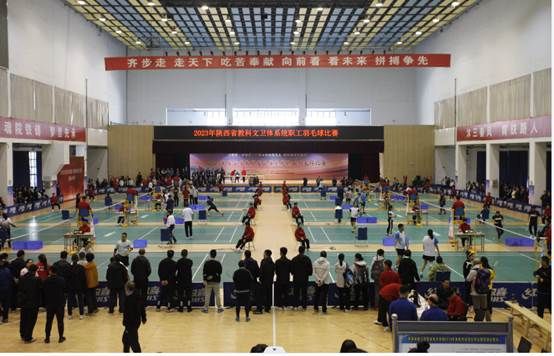 本网讯 10月20日-22日,以“中国梦·劳动美——凝心铸魂跟党走 团结奋斗新征程”为主题的2023年陕西省教科文卫体系统职工羽毛球团体比赛,在陕西铁路工程职业技术学院高新校区文体中心举行。来自全省教科文卫体工会系统60个单位600余名教练员、运动员参加了比赛。