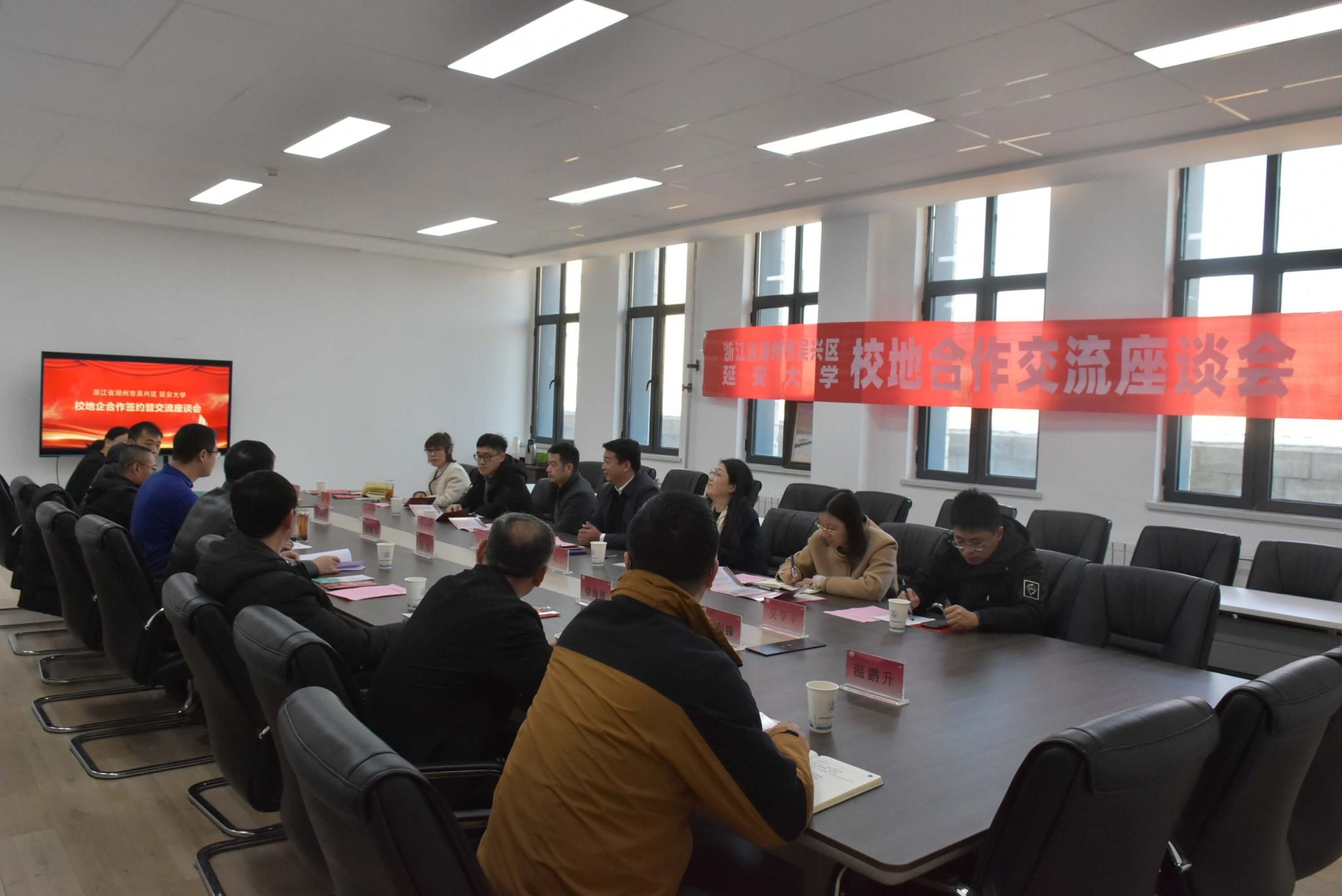 赵永需介绍了吴兴区地理优势、经济发展情况。他表示,校企双方在人才供需有广阔合作空间,欢迎更多延大学子就业吴兴,宜居吴兴。陆培红介绍了吴兴区各项引才政策。与会人员观看了湖州市吴兴区和米兰宣传片,并围绕毕业生实习、大学生游学活动、毕业生参加招聘会等深入交流。