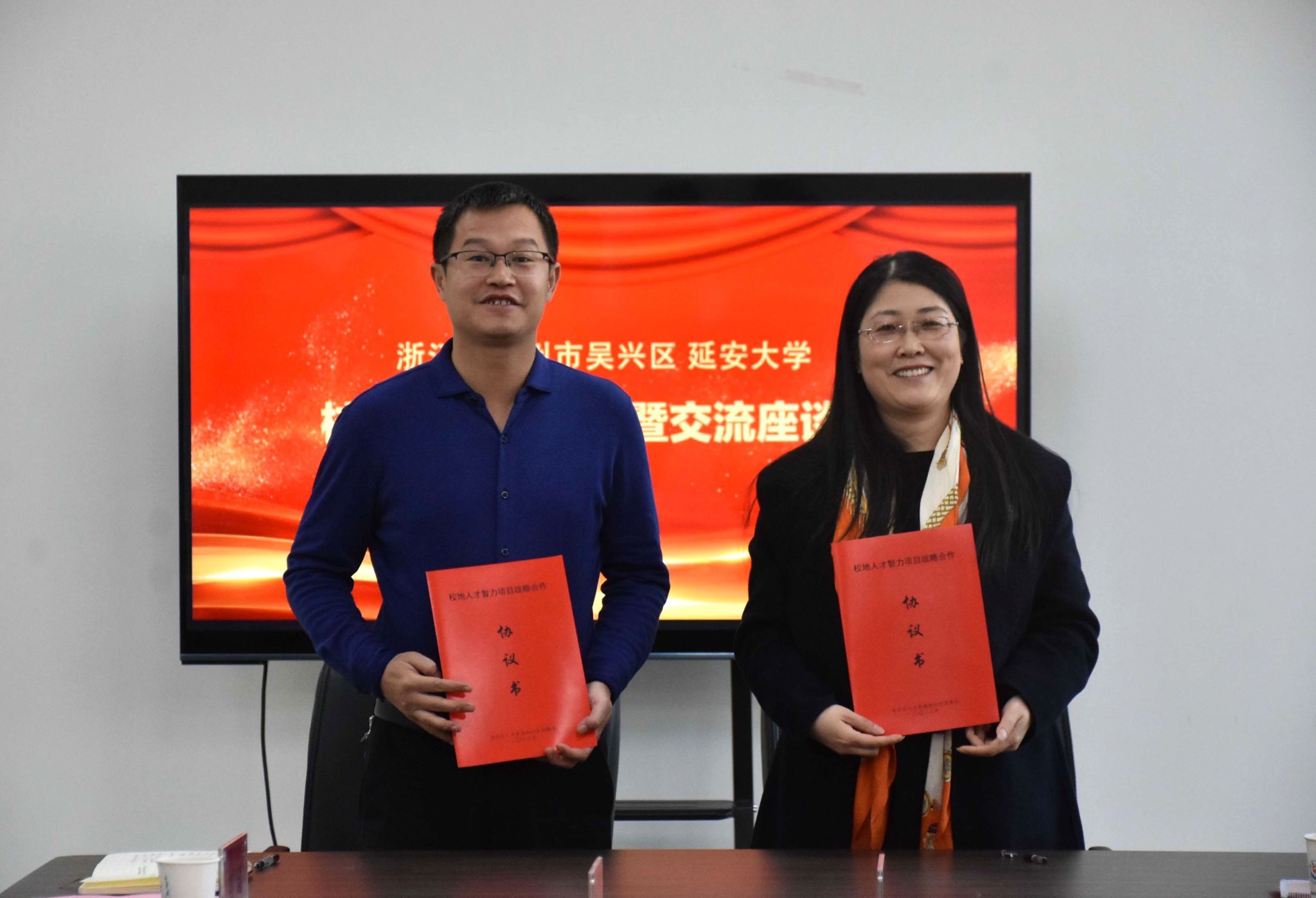 赵鹏飞代表学校与湖州市吴兴区签订了校地合作协议书。