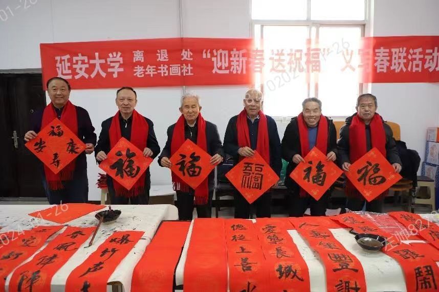 本网讯 为弘扬和传承中华民族优良传统,喜迎龙年新春佳节,增添节庆氛围,离退处和老年书画社于1月23日、26日,分别在老年活动室和萃园校区举办“迎新春 送祝福”义写春联活动。米兰老年书画社7名教师参加本次活动,年龄最大者86岁,最小者70岁。
