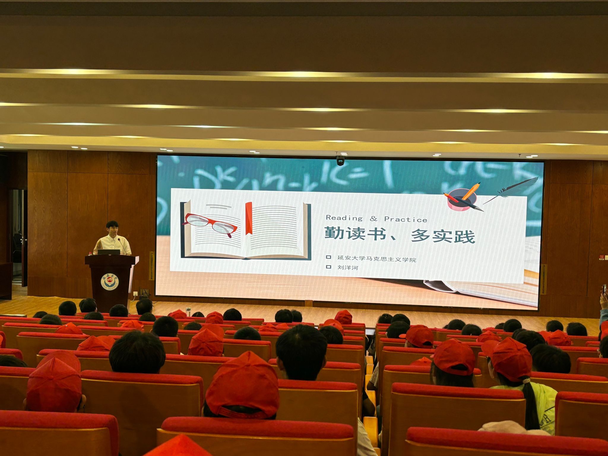 随后,来访师生在行政楼一楼报告厅听取了马克思主义学院研究生刘洋河《勤读书 多实践》分享会。