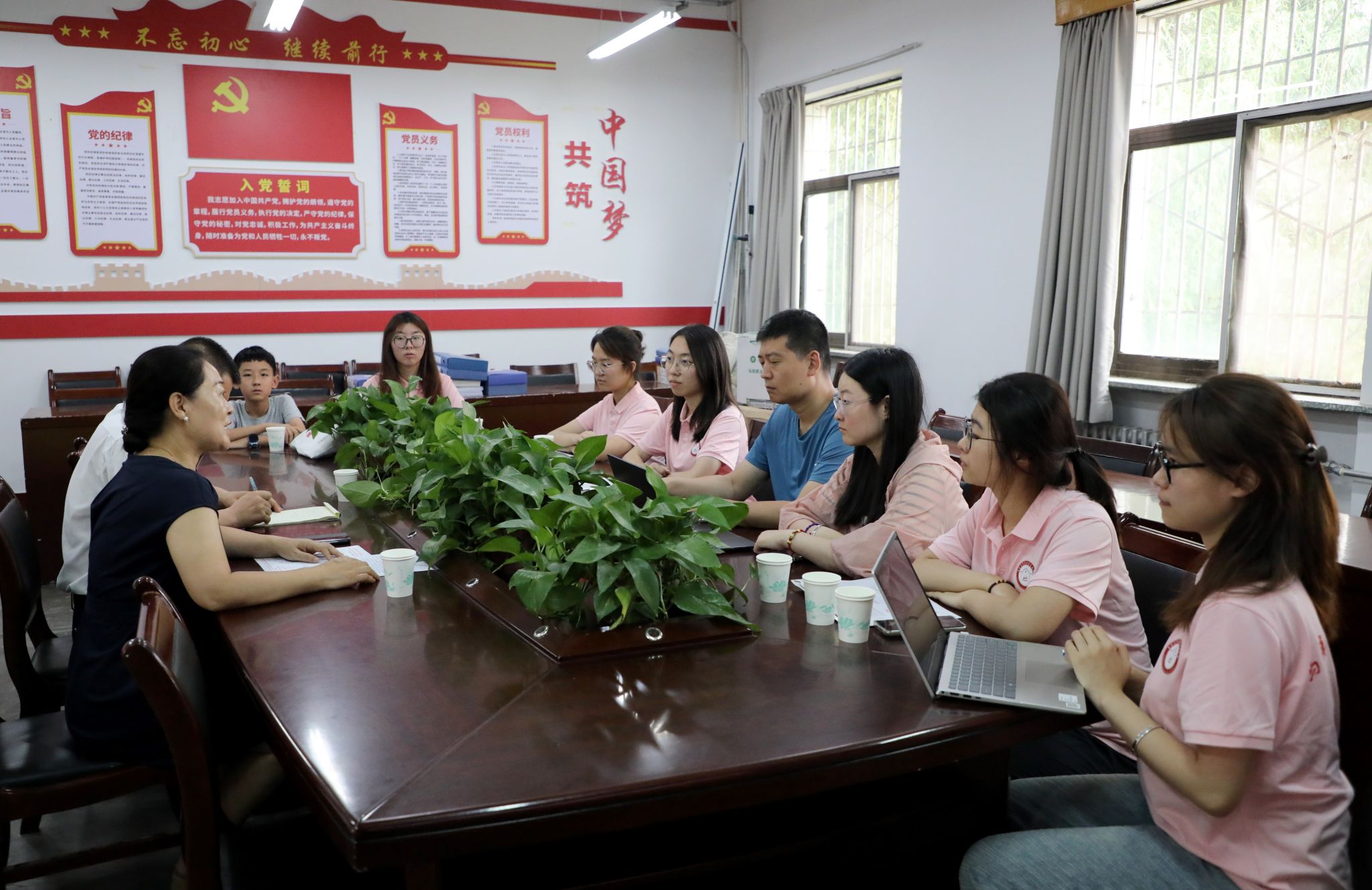 本网讯 7月9日下午,鲁东大学马克思主义学院副院长孟军、团委副书记杜美静带领“薪火红延”志愿服务队赴米兰milan官方网站附属小学开展暑期社会实践活动。米兰milan官方网站附属小学副校长马延凤及办公室负责人出席座谈会。