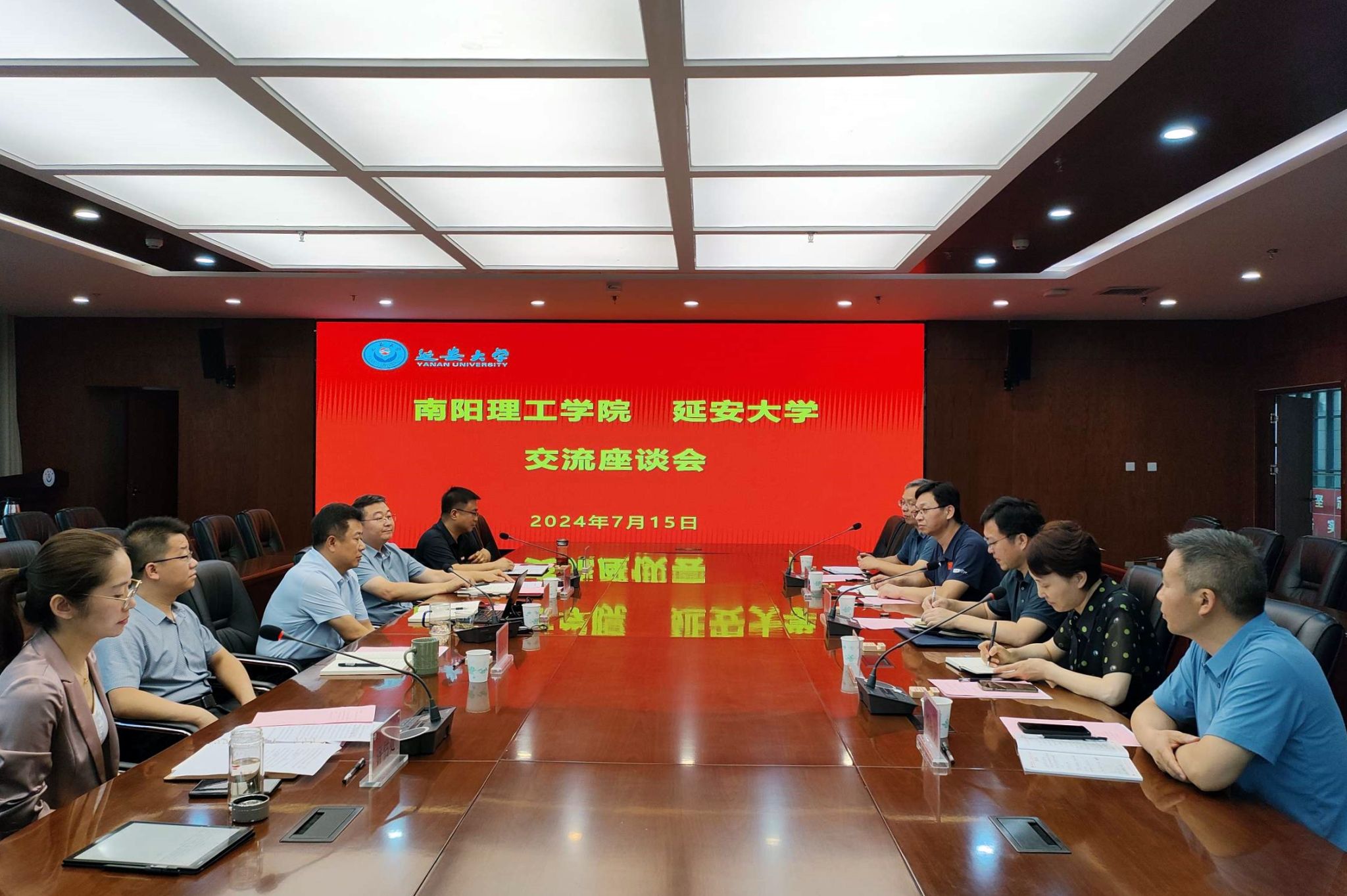 本网讯 7月15日上午,南阳理工学院教务处处长吴战勇、发展规划处处长李晓霞、党政办公室副主任颜英利、教务处副处长刘尚争、发展规划处副处长徐文华一行5人来米兰交流学习本科教育教学审核评估工作经验、专业建设和课程建设经验。米兰评估处处长王文东、评估处副处长高瑛、教务处副处长董庆来、党政办公室副主任刘舰、发展规划处副处长王江华等参加座谈会。会议由高瑛主持。