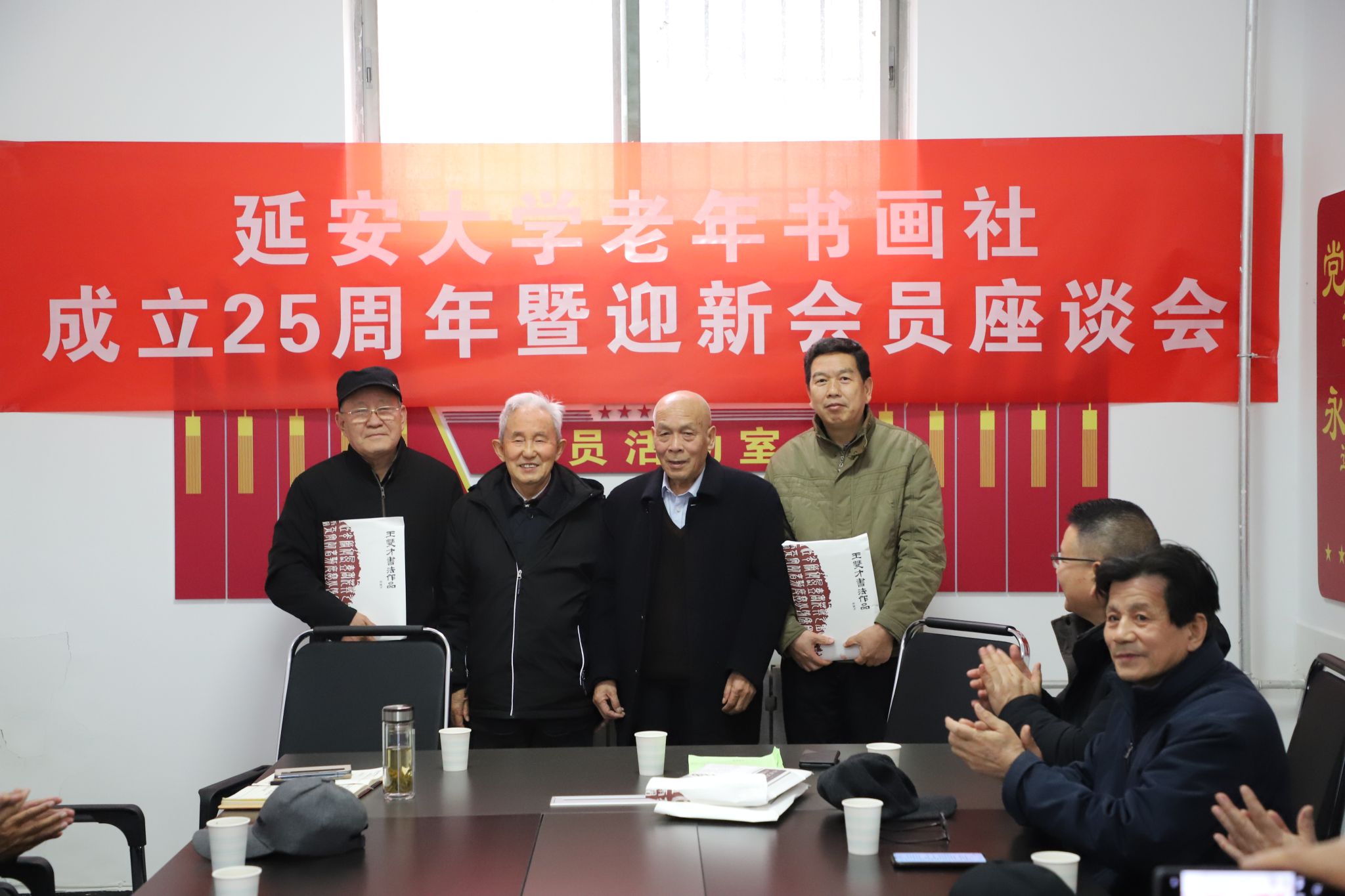 王双才为秦宏立等新会员赠送了书法作品。马志昌带头发言,回顾过去成绩,提出建议,与会同志积极发言,气氛热烈隆重。刘平安对会议简要总结,苗维东为座谈会写了“群贤毕玉”的书法作品。