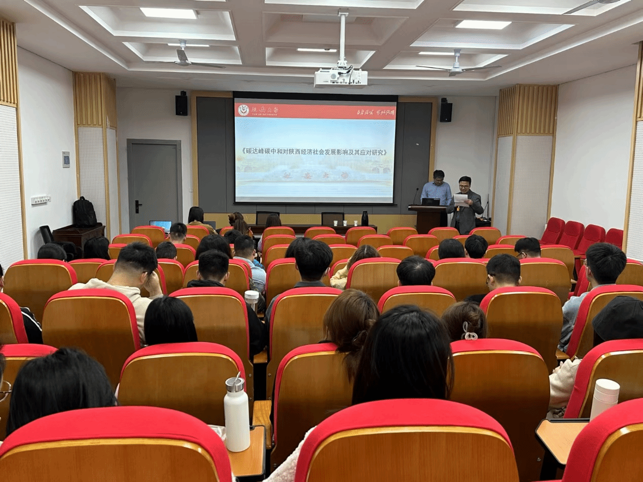 为了激发学生的科研热情,营造良好学术文化氛围,经管学院在2024年继续开展“问道经管学术讲座”系列活动。4月13日上午,经管学院邀请西安科技大学管理学院副教授、美国加州州立大学访问学者许建老师在学院103教室作了题为《碳达峰、碳中和对陕西经济社会发展影响及其应对》的报告。报告会由经管学院张龙文老师主持,经管学院师生五十余人参加了报告会。