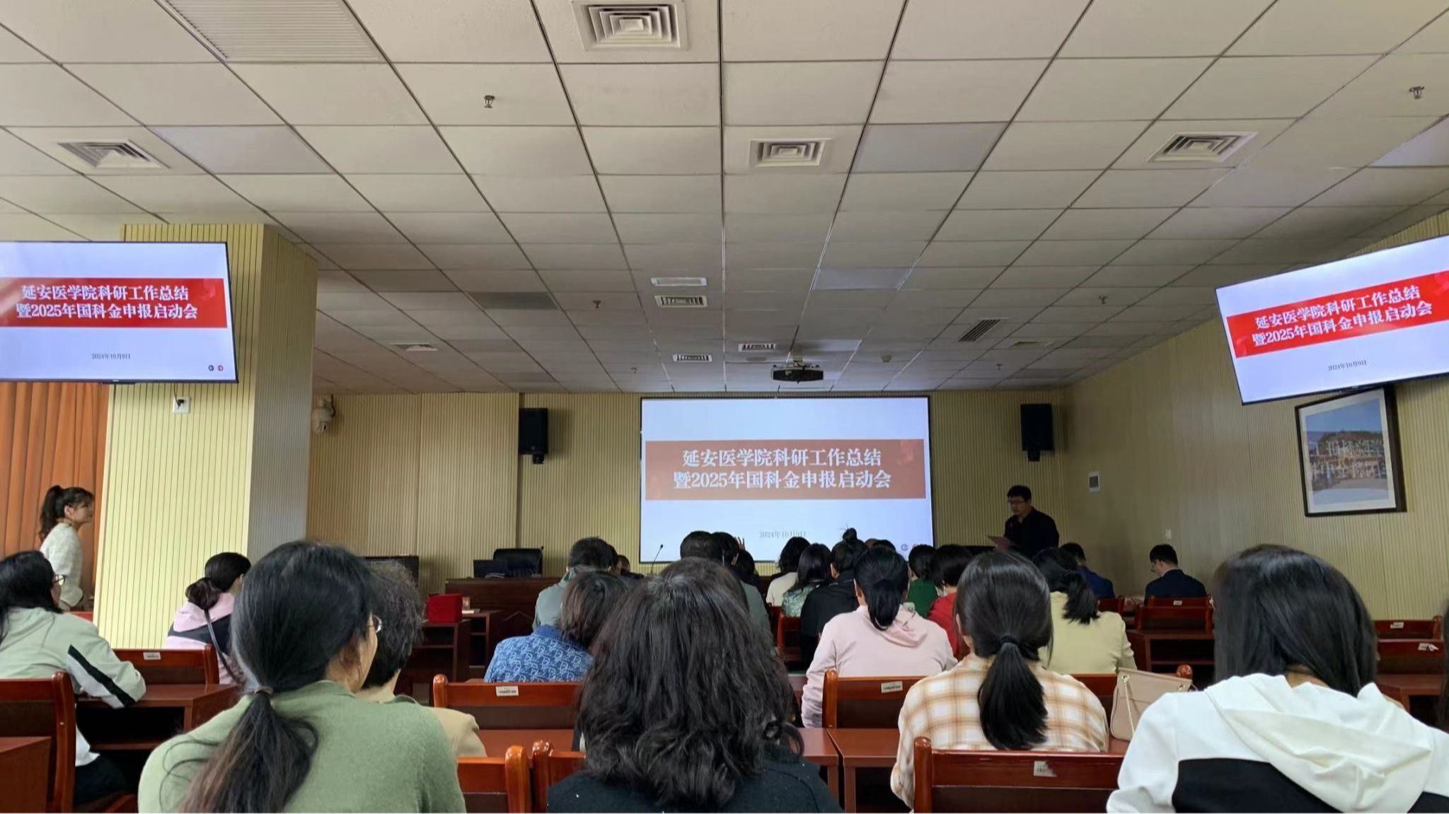 为持续推进我院有组织科研工作,扎实做好学院2025年国科金项目申报工作,2024年10月9日下午,在杨家岭校区图书馆第二会议室召开科研工作总结暨2025年国科金申报启动会。院长杨彦玲、副院长王璐、副院长孙伟民、校办副主任兼延安医学院综合办主任高曙光、各院系领导及全体教职工参加了会议。会议由研究生院副院长兼延安医学院学科建设与研究生教育办主任米志宽主持。