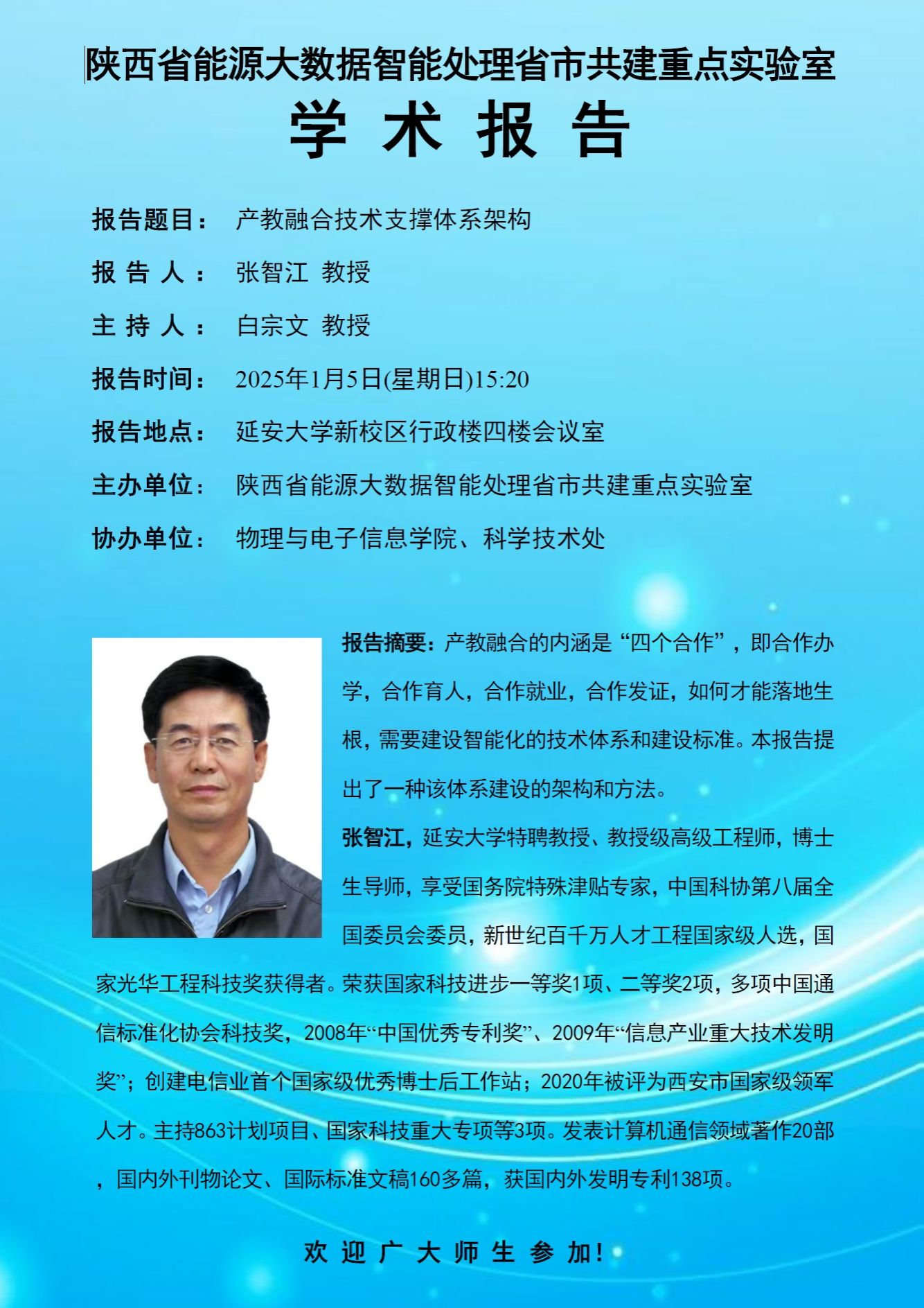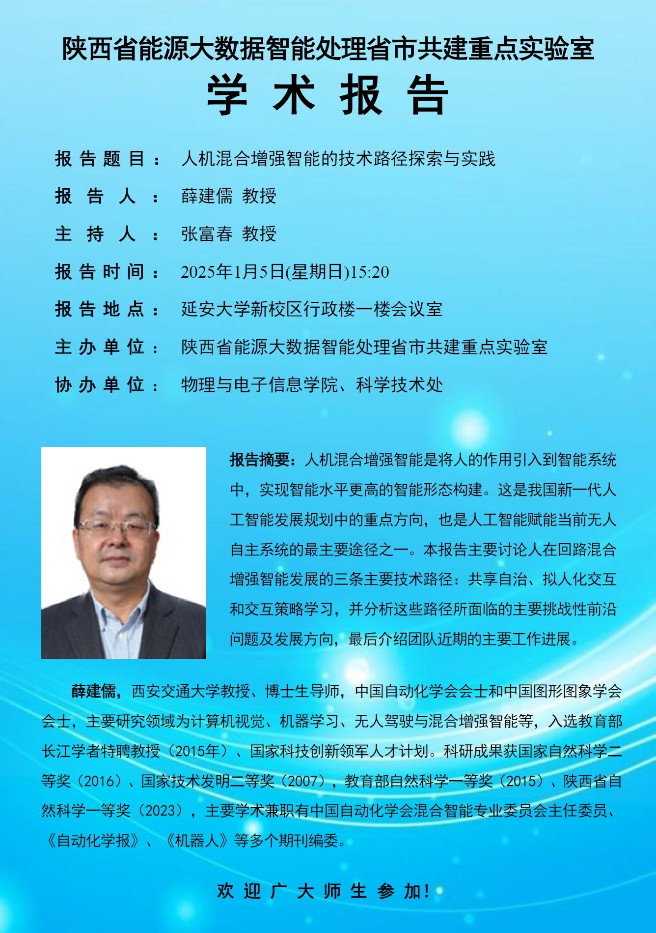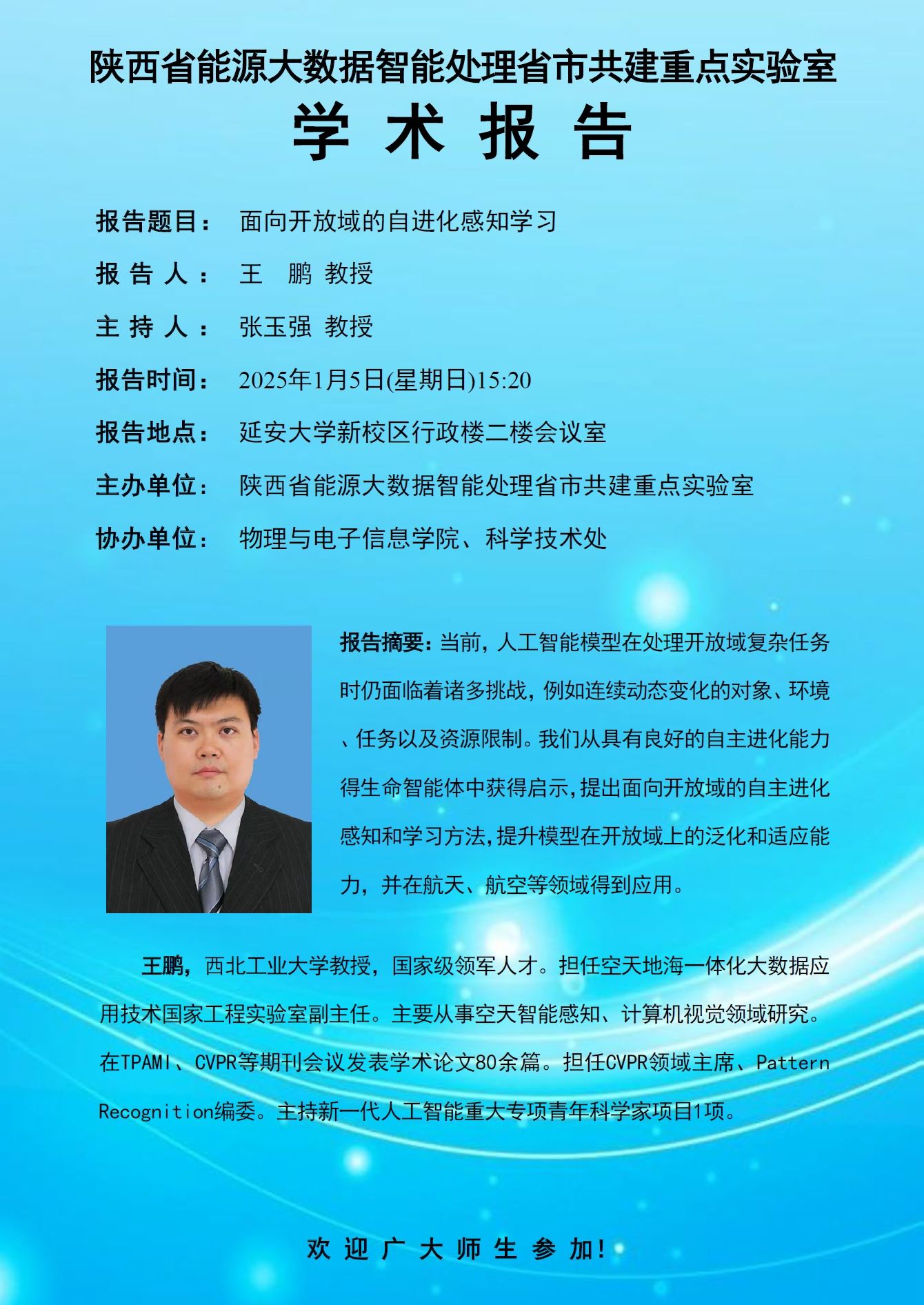 陕西省能源大数据智能处理省市共建重点实验室学术报告预告