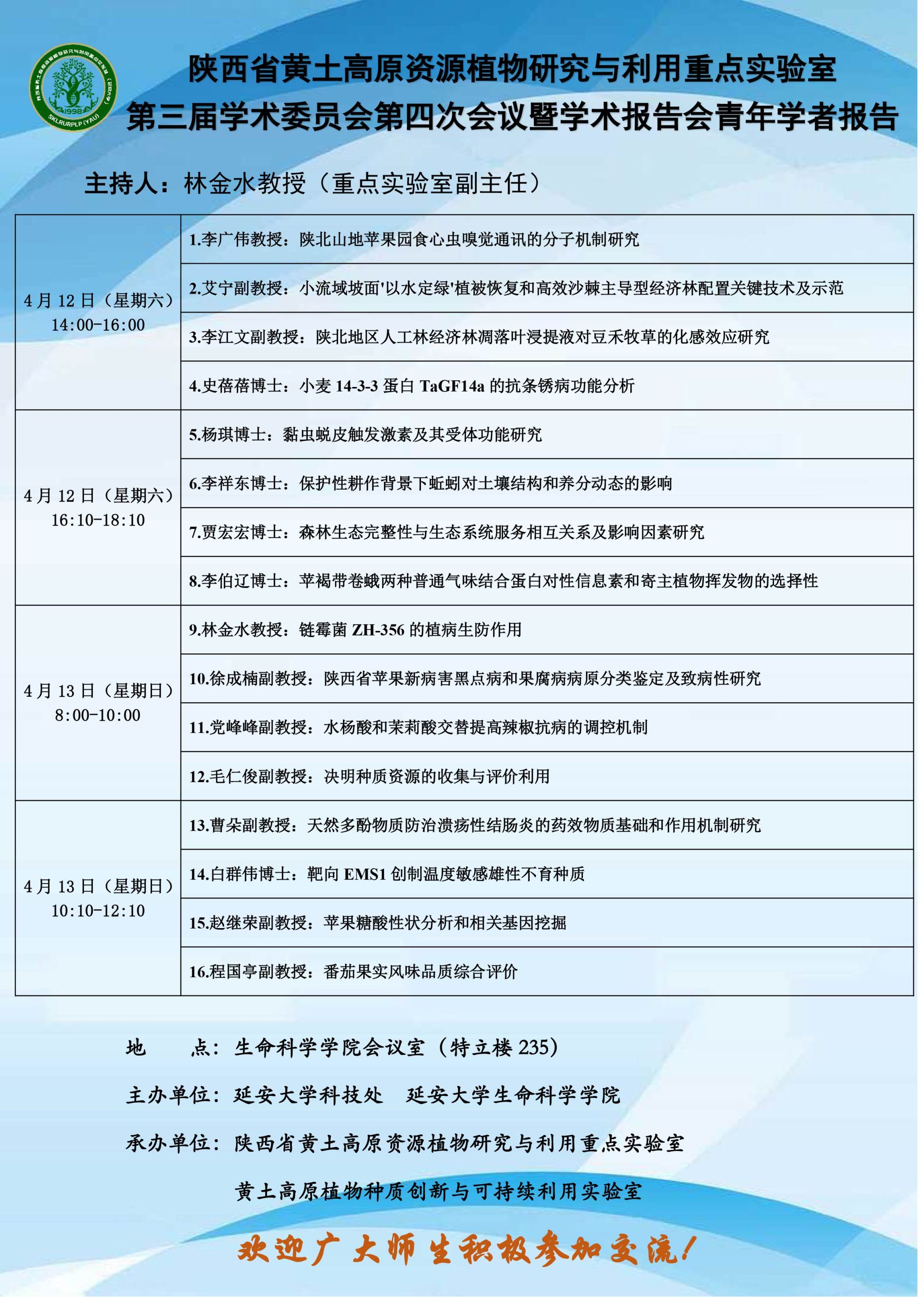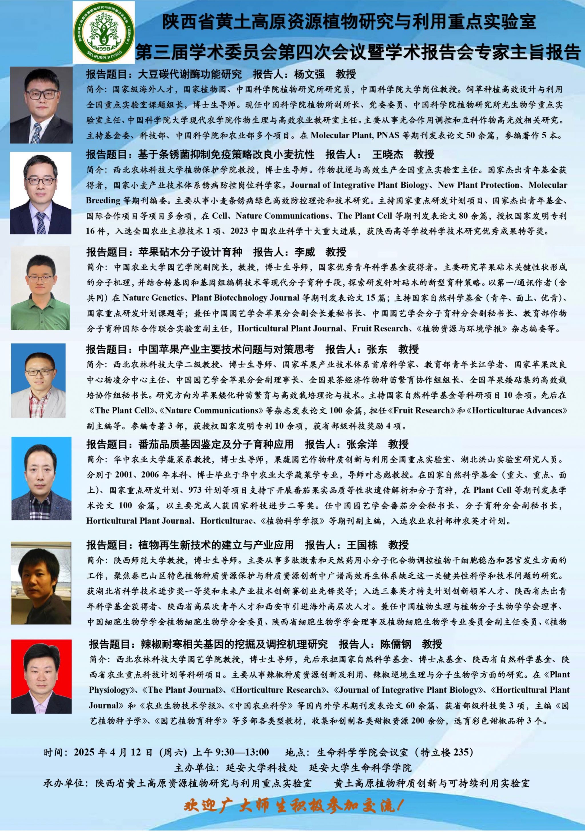 陕西省黄土高原资源植物研究与利用重点实验室第三届学术委员会第四次会议暨学术报告会预告