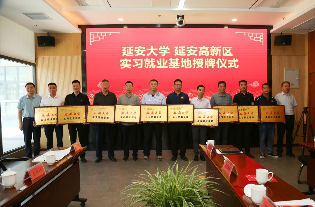 会上,彩虹(延安)新能源有限公司、延安守山机械制造有限公司、延安延昌装备制造(集团)有限公司、延安嘉盛石油机械有限公司、延安石源工贸有限公司、逯博士(延安)生物科技有限公司、延安宇飞航空科技有限公司、中电星原科技有限公司、延安随缘科技发展有限公司、延安延宁环境监测有限公司等企业负责同志分别介绍了企业的基本情况和对人才需求。随后,相关学院负责同志分别与相关企业负责同志签订了《实习就业基地协议书》。