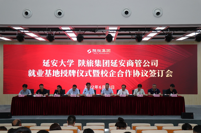 兰鸿涛和曹小红代表双方签署《实习就业基地协议》,吕达向陕旅集团延安商管公司“米兰milan官方网站实习就业基地”授牌。