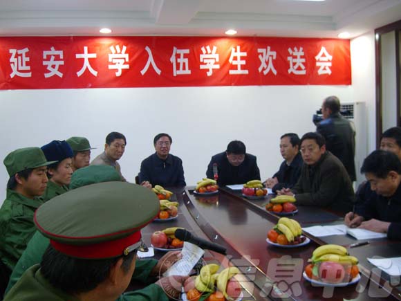 记者:徐承圆(实习生) 稿源:校办 发稿日期:2006-12-11 本网讯 12月8日下午,米兰milan官方网站入伍学生欢送会在逸夫楼第二会议室召开,校党委书记刘建德,党委副书记高延龙、刘庆利,副校长胡俊生、王延奇等校领导及学生处、教务处、武装部等有关部门同志和今年冬季即将入伍的13名同学参加了会议。