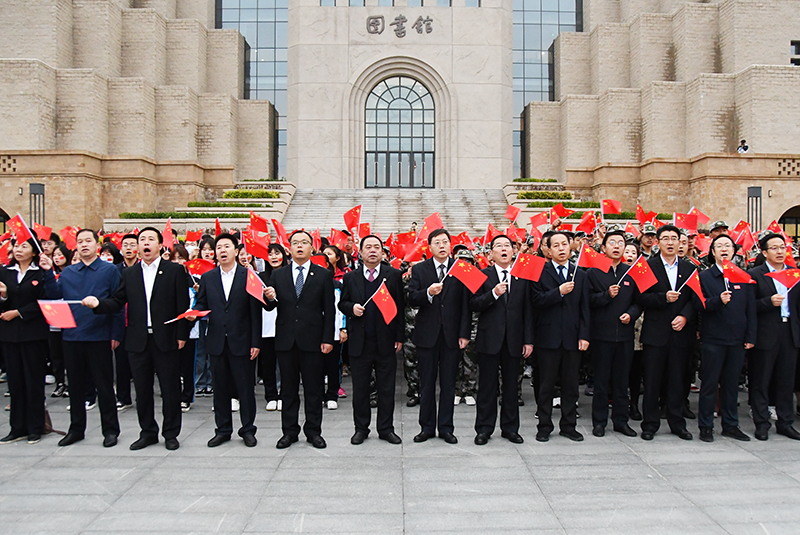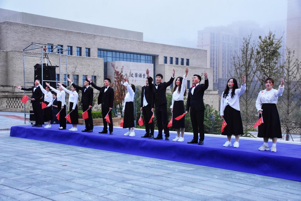 升旗仪式结束后,举行了迎国庆快闪活动。伴随着感人的节奏,全体师生挥舞着手中的国旗,饱含深情地唱响《歌唱祖国》《我和我的祖国》,“五星红旗迎风飘扬,胜利歌声多么响亮,歌唱我们亲爱的祖国,从此走向繁荣富强……”,他们用最美的歌声向中华人民共和国成立71周年献礼。铿锵有力的歌声、坚定不移的目光,灿烂明媚的笑容,展现了每一个延大人与祖国同呼吸、与时代共奋进的爱国主义情怀和昂扬向上的精神风貌,激励着全体师生以进取的精神和奋斗的姿态投身到工作和学习中,为实现中华民族伟大复兴的中国梦,为建设特色鲜明、国内知名的高水平教学研究型大学贡献力量。