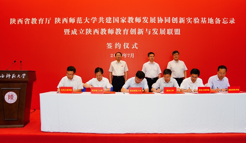 本网讯 7月13日下午,省教育厅与陕西师范大学共建国家教师发展协同创新实验基地备忘录暨成立陕西教师教育创新与发展联盟签约仪式在陕西师范大学长安校区举行。陕西省人民政府副省长方光华出席签约仪式并讲话。省教育厅厅长王建利,陕西师范大学党委书记程光旭、校长游旭群,米兰党委书记张金锁等11所高校党委书记或校长以及相关职能部门负责人等参加签约仪式。仪式由省教育厅副厅长刘建林主持。
