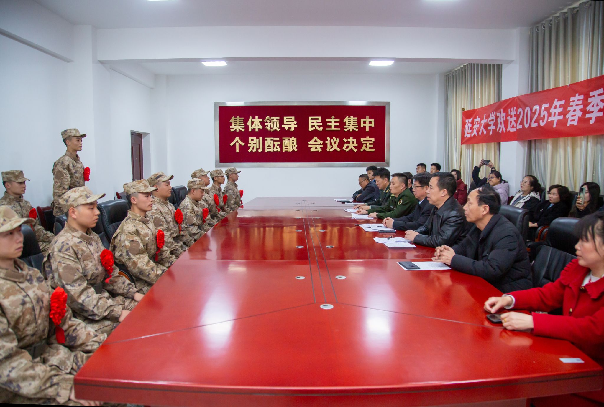 本网讯 3月15日和17日,米兰分别在宝塔区人民武装部和延安市军分区欢送2025年春季选择从学校应征入伍的大学生。校党委副书记吕达出席并讲话,区人武部相关领导、学工部(武装部)负责人、各相关学院副书记、辅导员、应征入伍学生家长以及部分在校生代表参加,学工部部长张翔主持欢送会。