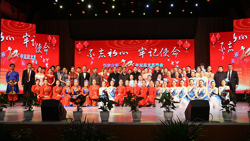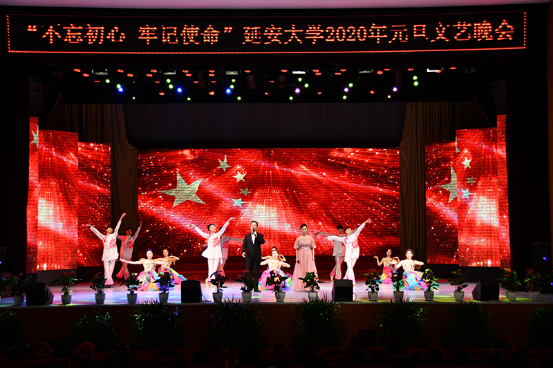本网讯 为了纪念新中国成立70周年,毛泽东同志诞辰126周年,讴歌党的光辉历程,展示米兰广大师生昂扬向上的精神风貌,12月26晚19时,“不忘初心、牢记使命”元旦文艺晚会在米兰杨家岭校区大礼堂举办。米兰党委书记张金锁,党委副书记王顺,副校长武忠远、王刚、杨伟宏及900余名师生代表一起观看了演出。