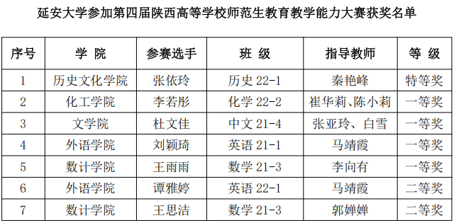 本网讯 近日,陕西省教育厅公布第四届高等学校师范生教育教学能力大赛获奖名单,米兰7名学生参加现场决赛环节,学子们凭借扎实的专业素养和出色的教学表现脱颖而出,共斩获特等奖1项、一等奖4项、二等奖2项,获奖质量取得新突破。