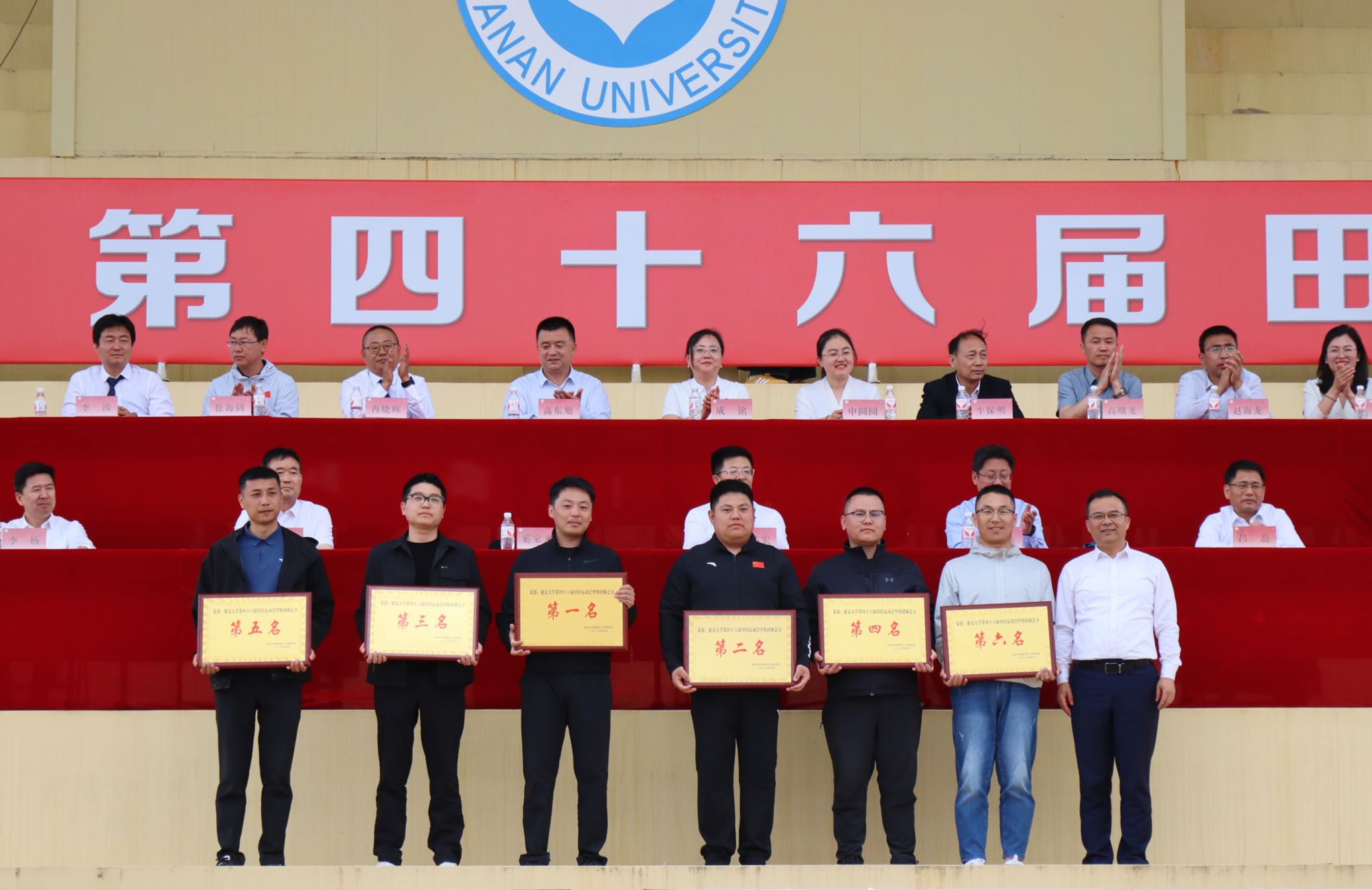 本届田径运动会赛事主管、体育学院副院长宗延伟宣布了竞赛成绩及获奖名单。延安医学院获得甲组团体总分第一名,鲁迅艺术学院获得第二名,数学与计算机科学学院获得第三名,物理与电子信息学院、化学与化工学院、经济与管理学院获得第四到六名;体育教育24级2班获得乙组团体总分第一名,体育教育23级3班获得第二名,体育教育24级4班获得第三名,体育教育24级1班、体育教育23级1班、体育教育24级3班获得第四到六名。本届运动会共有39人、16次打破十项校运会记录,王辉、苏清芳、白剑、孙会会等20人获得优秀裁判员称号。