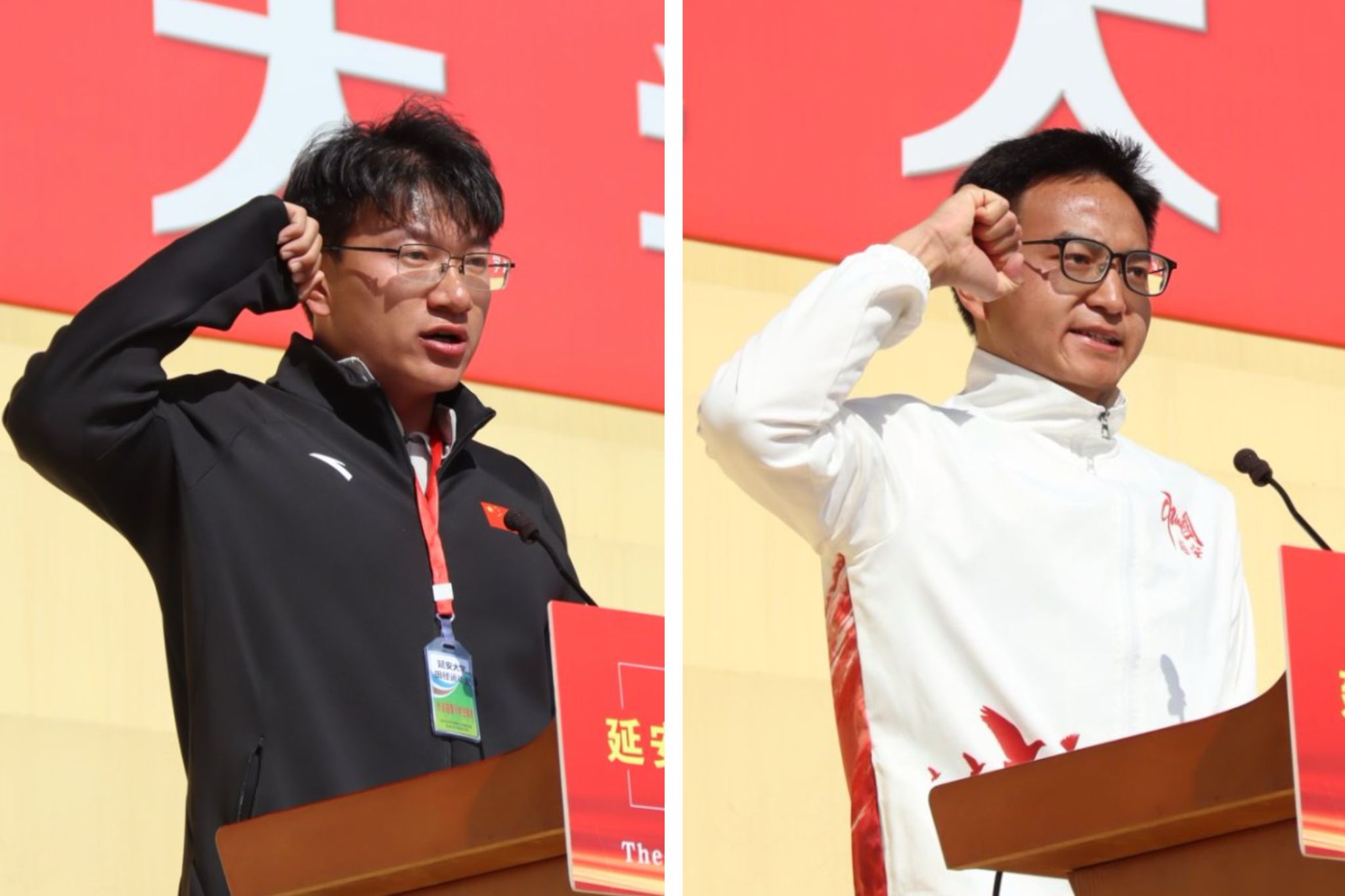 开幕式上,体育学院常艺凡老师和文学院路忠泽同学分别作为裁判员代表和运动员代表宣誓。