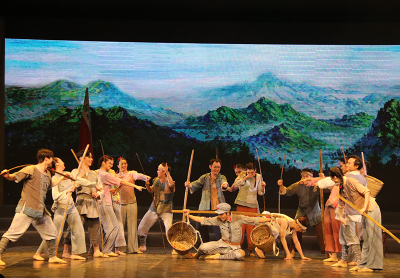 本网讯 为了迎接新中国成立70周年,纪念五四运动100周年,4月23日晚19时30分,“2019高雅艺术进校园”活动之北京舞蹈学院原创民族舞剧《井冈•井冈》在米兰大礼堂隆重上演。校党委副书记田伏虎,各单位负责人及900余名师生观看演出,共同领略了革命先辈对理想的坚守以及薪火相传的壮志宣言。