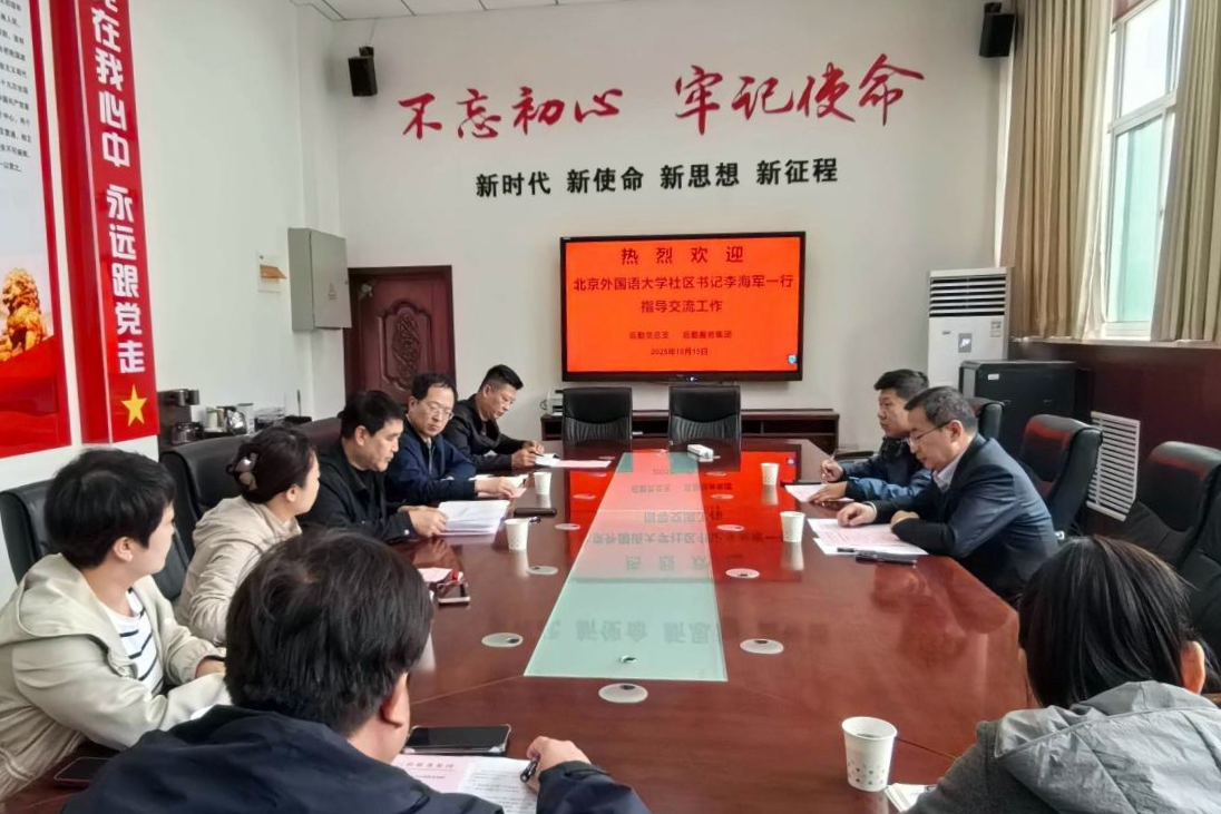 本网讯 10月15日上午,北京外国语大学社区中心书记、主任李海军一行2人来米兰后勤处座谈交流。后勤党总支书记李乔飞,后勤处在家领导及相关中心负责人陪同并参加座谈会。