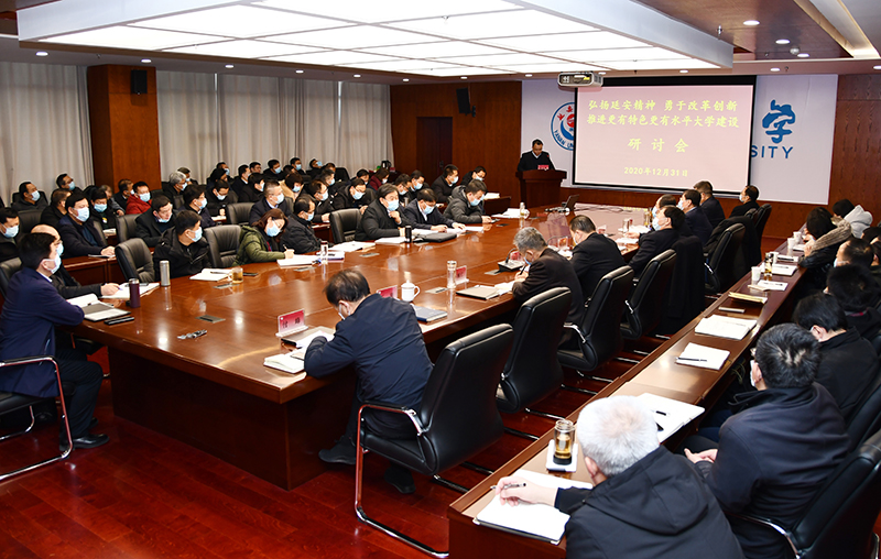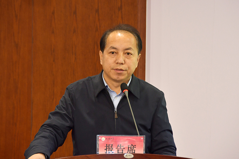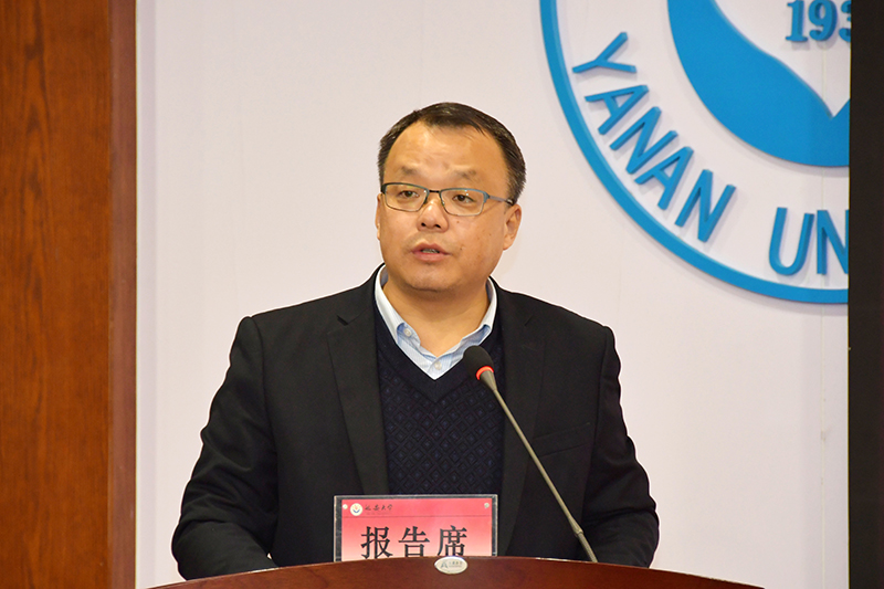 教务处处长吕磊就学校“十四五”专业建设与本科生教育规划作了报告,报告提出了深化延安精神“一体两翼”育人体系、实行专业提升计划等6个计划和加强实验室建设、提升信息化建设水平等方面的重点任务。