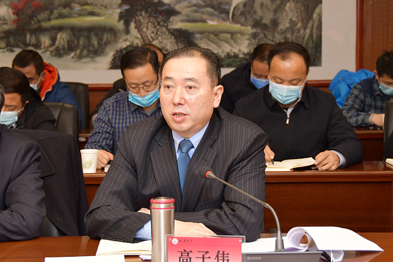 就编制好“十四五”事业发展规划,高子伟强调,一是要坚持开门问策,把加强顶层设计和问计师生紧密结合起来,加强调查研究,切实把规划编制工作作为统一思想、凝聚共识、落实责任的过程。二是要坚持学习政策、研判形势,特别是要在深入总结规划执行成效和存在的问题基础上,谋划编制好“十四五”规划。三是要注重政策牵引、精准项目安排,加强对接沟通,确保规划编制的针对性、实效性。四是要对标国家和区域发展需求,以问题为导向,在创新思路谋发展、提升贡献度和智慧度上下功夫;要对标学校战略布局,扶优扶特,在强特色上下功夫;要对标学校基本格局,坚持分类指导,在差异化发展上下功夫。