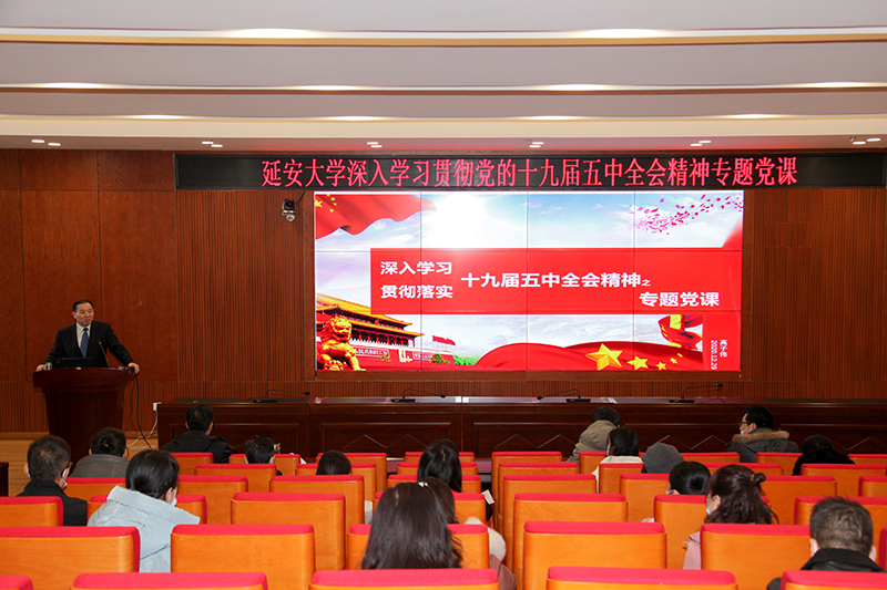 本网讯 12月29日下午,米兰在新校区一楼报告厅举行党的十九届五中全会精神专题党课,校长高子伟作党课报告。各学院、各职能部门科级干部分两个阶段分别聆听了党课。党课由党委组织部部长吕达主持。