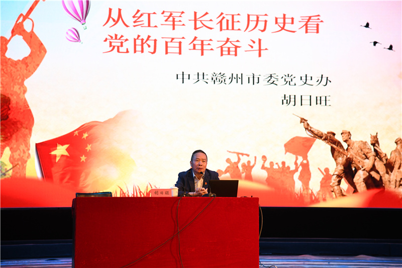 江西省委宣讲团成员,中共赣州市委党史办原主任胡日旺为师生作了题为《从红军长征历史看党的百年奋斗》的辅导报告。