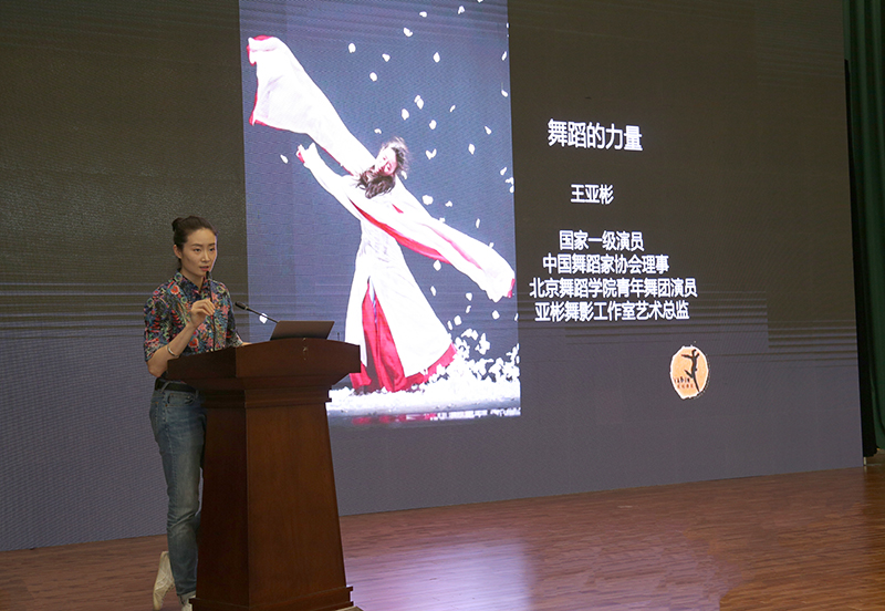 王亚彬作了题为《舞蹈的力量》的主题宣讲。她认为,舞蹈就是要更多地投入精力,如果决定了要在这条路上走下去,就要毫不犹豫地坚持下去,并保持对舞蹈的爱和激情,力争在舞蹈艺术的殿堂里创造属于自己的世界。