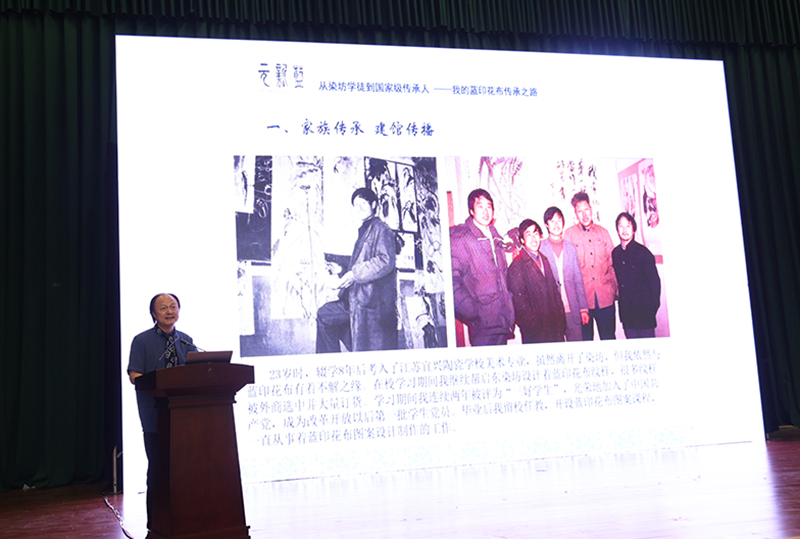 吴元新作了题为《从染坊学徒到国家级传承人——我的蓝印花布传承之路》的主题宣讲。他在宣讲过程中回顾了自己传承保护蓝印花布技艺的经历,并提出,作为非物质文化遗产传承人,一定要有一种责任、一种担当和一种情感,将民族文化传承好、传播好、弘扬好,让非物质文化遗产走进百姓生活。