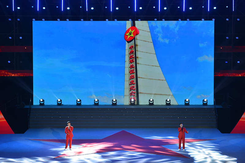 此次歌会在节目创作上充分体现了经典性、时代性和地域性的有机结合。一首史诗级红歌《东方红》拉开了整场歌会的序幕,该节目以高亢激扬的原生态演唱和气势磅礴的安塞腰鼓等充满地域特色的表演形式,呈现出一幅中国共产党百年奋斗历程的壮丽画卷;米兰milan官方网站联合井冈山大学、赣南师范大学、遵义师范学院、阿坝师范学院、甘肃民族师范学院等六所长征沿线高校师生们带来一组红色经典歌曲联唱——《映山红》、《十送红军》、《遵义会议放光辉》、《过雪山草地》、《红军不怕远征难》,学子们在优美动人的旋律中重温长征故事,感悟长征精神,表达了年轻一代对革命先辈的无限崇敬与缅怀之情;富有时代印记和地域特征的陕北民歌《南泥湾》、《山丹丹花开红艳艳》,在黑鸭子组合和王小妮的深情演绎中,致敬那一段值得被铭记的历史,也深深地打动了全场观众。
