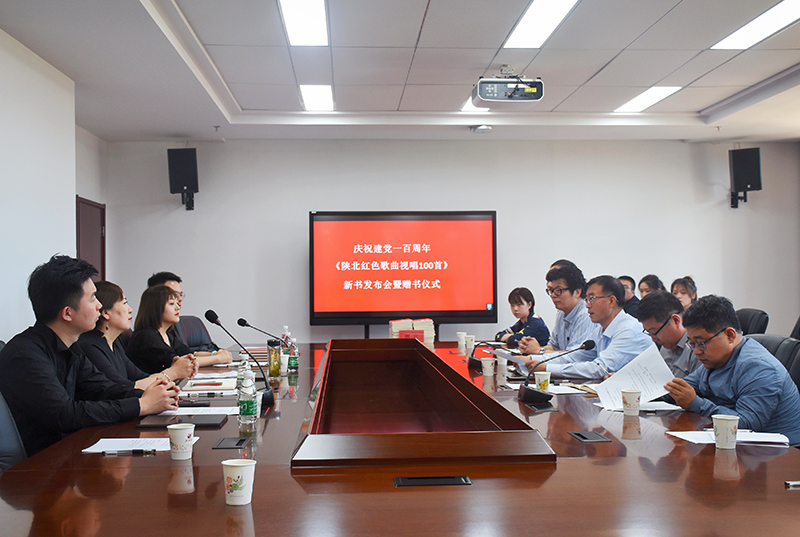 本网讯 6月18日上午,庆祝建党一百周年《陕北红色歌曲视唱100首》新书发布会暨赠书仪式在米兰新校区行政楼六楼会议室举行。副校长武忠远、西安音乐学院副院长强陆平,教务处处长、新书作者王高飞,鲁艺学院院长田大成、副院长李辉、图书馆副馆长贺知章以及两校师生代表等40余人参加了会议,会议由教务处副处长董庆来主持。