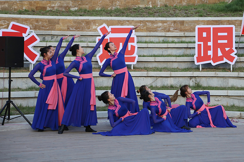 活动在具有浓郁民族风情的蒙古舞表演中拉开序幕,表演者通过绚丽多彩的舞姿,展现了中国文艺人从草原文艺轻骑兵到黄土高原文艺轻骑兵的使命传承和责任担当;陕北民歌《哥哥回家》,唱出了黄土地儿女的朴实与真挚;中国鼓合奏、古筝合奏、手风琴合奏分别呈现了《龙腾虎跃》《南泥湾》《东方红》《我和我的祖国》等经典曲目;女生独唱、男女二重唱、男生合唱《延安之恋》《天耀中华》更是将演出推向了高潮。精彩纷呈的艺术表演,吸引了许多师生的驻足观看,现场观众参与人数达到400人余次。观看演出师生表示,通过红歌和红舞形式开展党史学习教育宣传,增强了学习教育的吸引力,拓宽了学习教育的途径,收到了春风细雨润无声的效果。