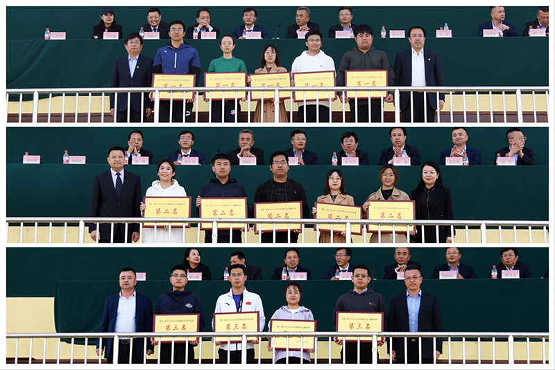 苏醒仁为获得团体特等奖的代表队颁奖,武忠远为获得团体一等奖的代表队颁奖,杨伟宏为获得团体二等奖的代表队颁奖,付峰为获得体育道德风尚奖的单位颁奖。有关体委委员为单项比赛前三名代表队颁奖。