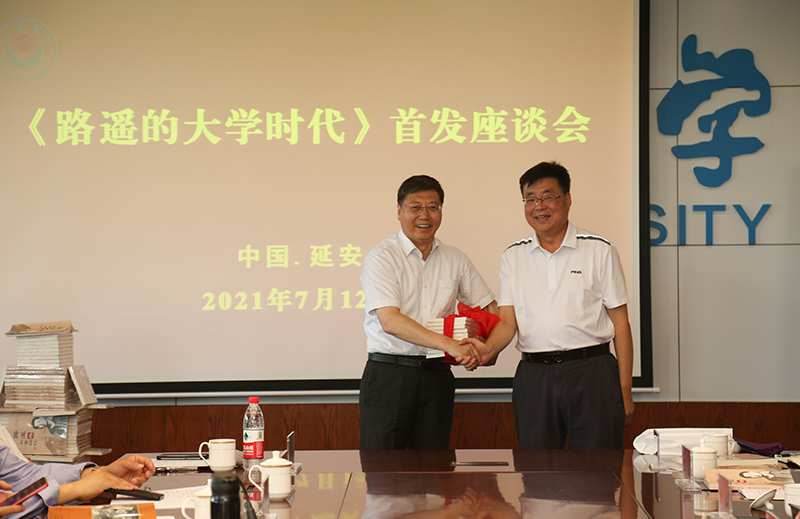 会上首先宣读了陕西省作家协会发来的贺信,张金锁致了欢迎辞,申沛昌介绍了《路遥的大学时代》的策划和撰写情况,梁相斌和与会者分享了策划出版本书的初衷与心得,并代表出版方向米兰赠送了图书,张金锁代表米兰、文学院院长王俊虎代表文学院接受了图书。