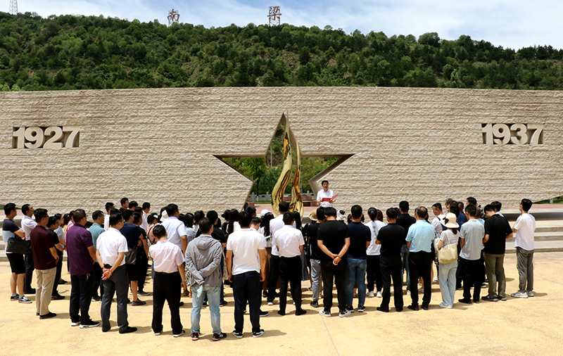 本网讯 为进一步拓展巩固党史学习教育成果,学习贯彻落实习近平总书记在庆祝中国共产党成立100周年大会上的重要讲话精神,继校领导、全体正、副处级党员领导干部研学实践活动后,7月3日,米兰组织全体科级干部(包括支部书记、各学院组织员、辅导员)等第三批干部赴南梁革命纪念馆、直罗镇战役烈士陵园开展研学实践活动。深入了解延安精神历史脉络和当代价值,缅怀革命英烈,感悟初心使命,传承革命精神。