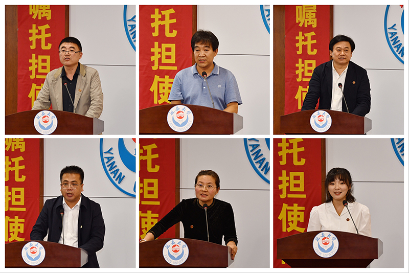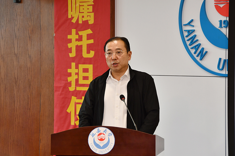 副校长、马克思主义学院院长谭虎娃在发言中分享了学院以贯彻落实习近平总书记重要批示精神为根本遵循,继承先辈荣光和传统,在新校区新的工作环境中,以博士点申报为目标,全面推进马克思主义学院、马克思主义理论学科的建设的重要举措,回顾了学院在培养具有延安精神特质时代新人、科学研究等方面取得的可喜成绩,展望了新时代加强马克思主义学院建设的思路和举措。