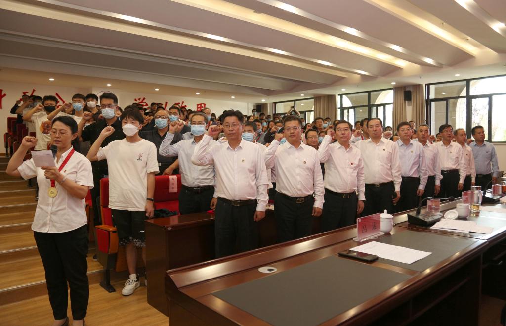 在附属医院副院长李红梅的带领下,全体教师重温了教师誓词,面对五星红旗进行了庄严的宣誓。