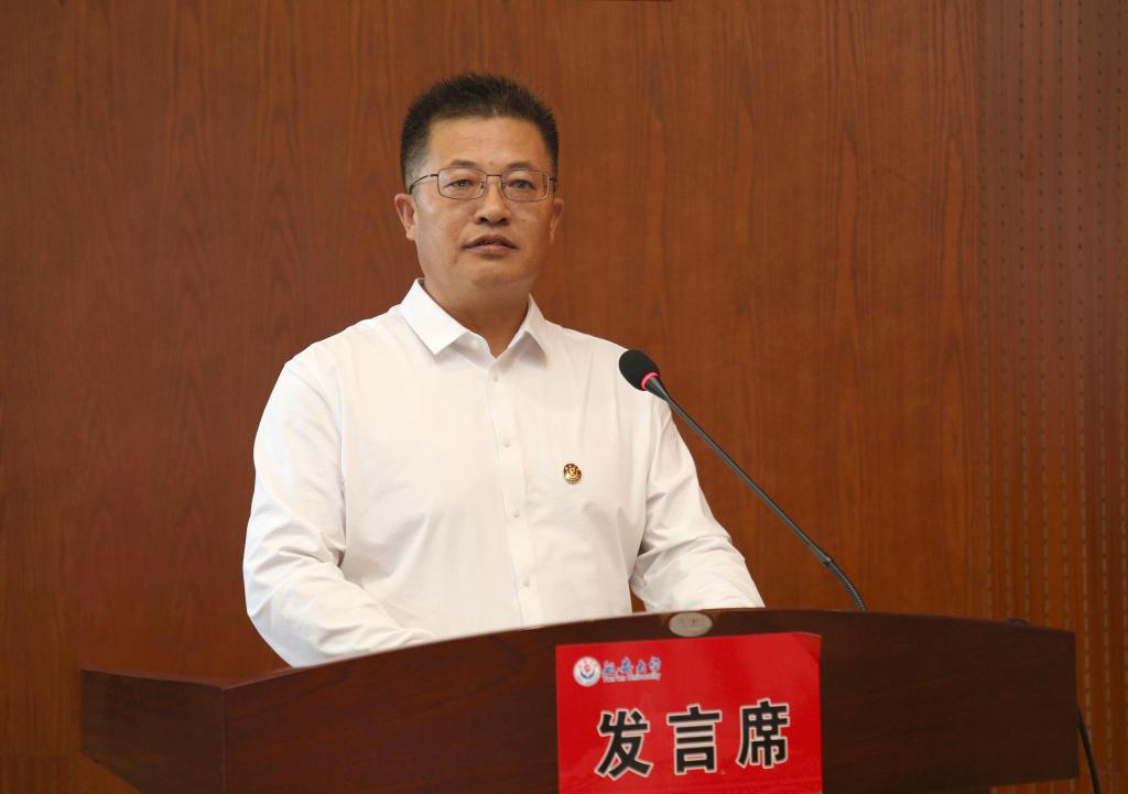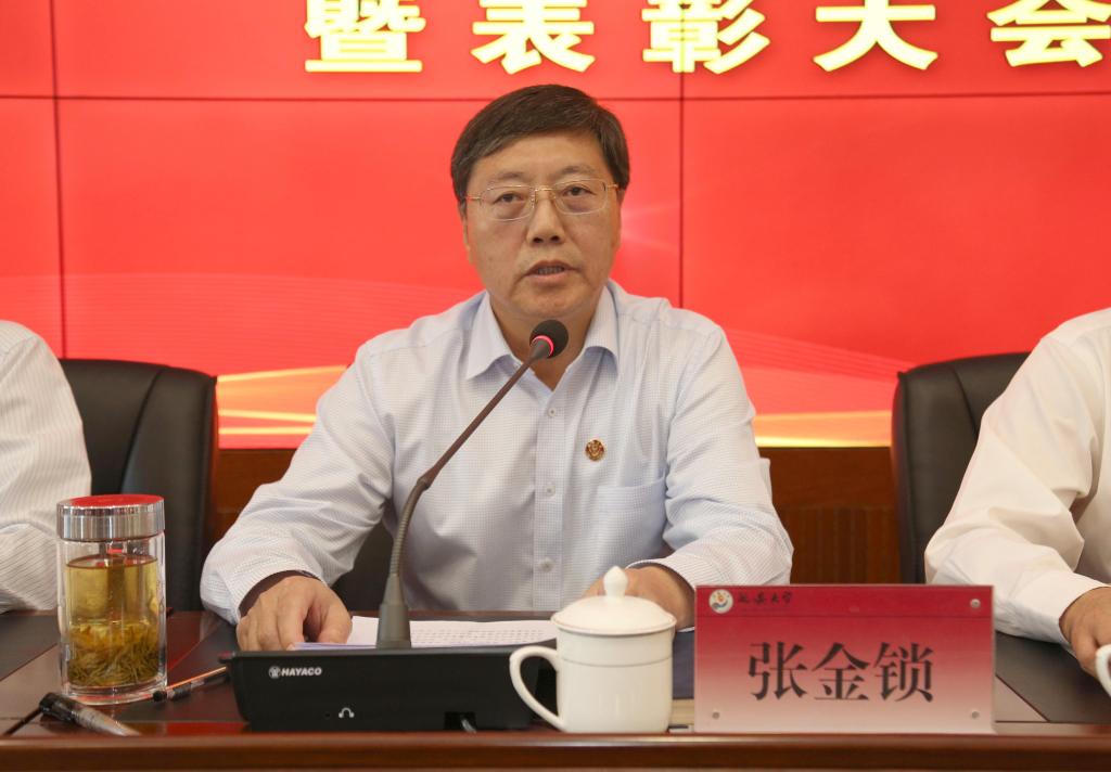 张金锁代表学校向辛勤耕耘在教学、科研、医疗、管理、服务一线的全体教职员工,离退休老同志致以节日的问候,向受表彰的单位和个人及从教三十年的教师表示热烈的祝贺,向为一年来学校建设发展付出智慧和心血的教职工表示衷心的感谢,向55名新入职的教师表示热烈的欢迎。