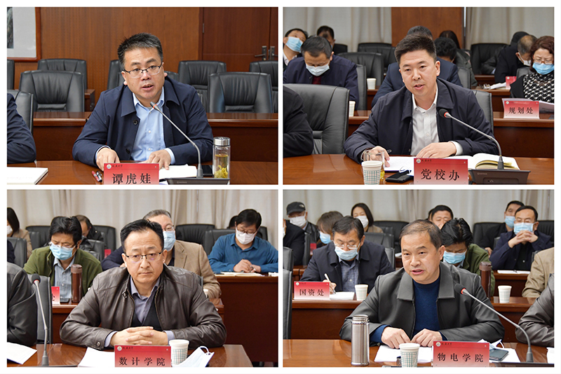 副校长谭虎娃、党校办主任李杨、物电学院党委书记常胜伟、计算机学院党委书记高启荣分别围绕学习内容,结合工作实际作了交流发言。