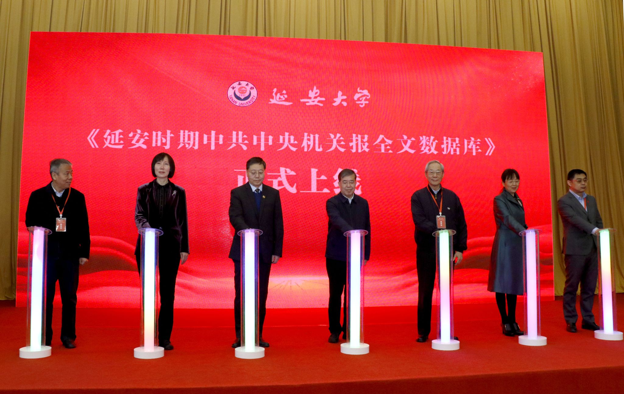 陕西省社会科学联合会副主席高红霞和中共陕西省委教育工委宣传部部长梅争利先后讲了话,并与中共中央党史研究室原副主任章百家、中国延安干部学院副院长韩东晖,以及任宗哲、张金锁、杨宏兰共同启动数据库上线。